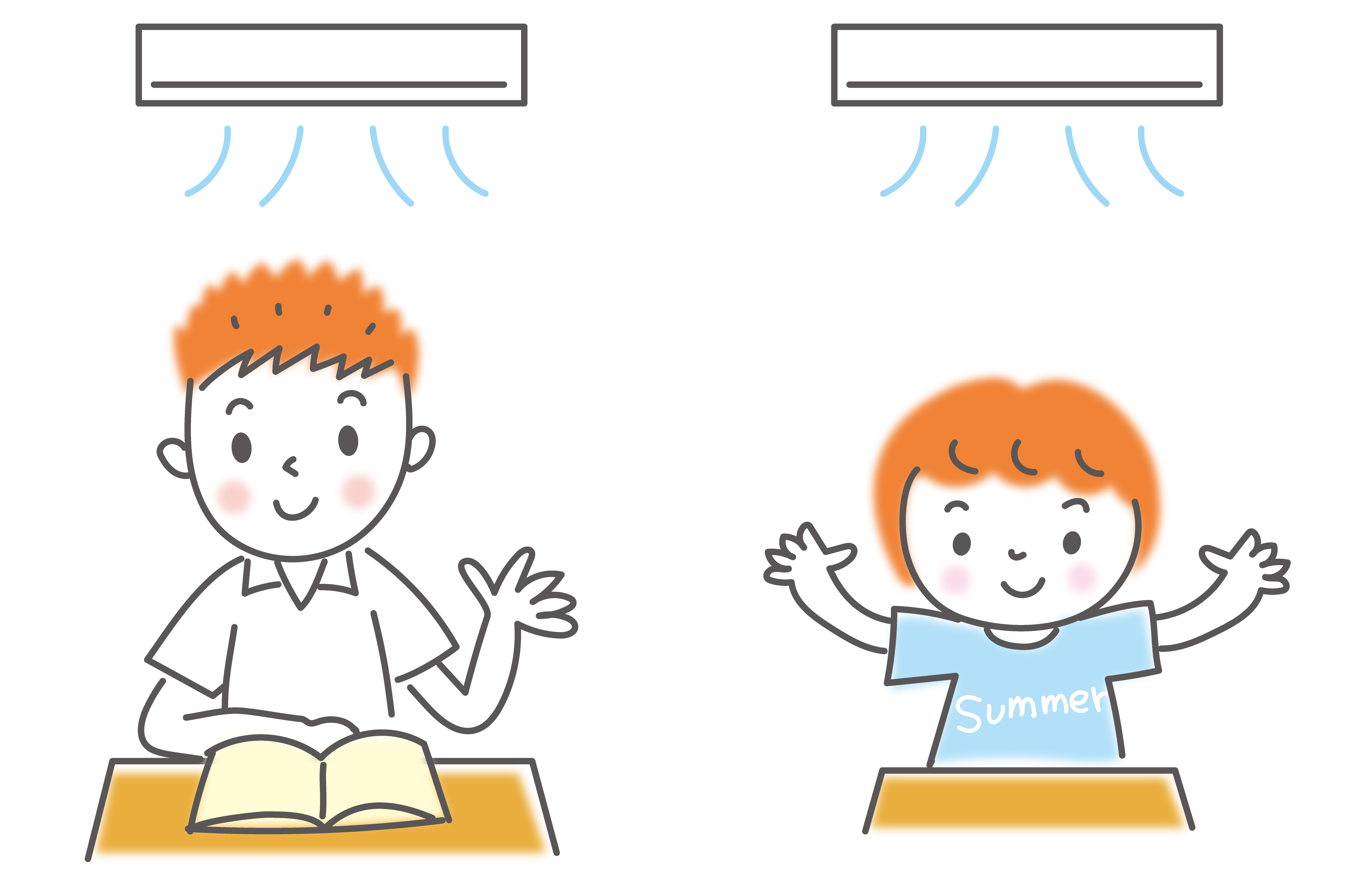 子どもの教育環境を快適にするため、すべての小中学校の教室にエアコンが設置されました。